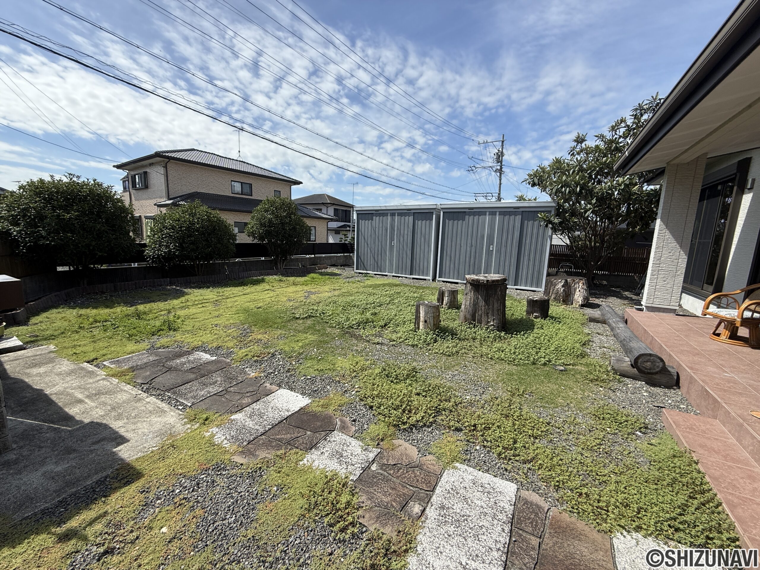 122坪の整形地。日当たり良好の広い庭でガーデニングや家庭菜園を満喫。