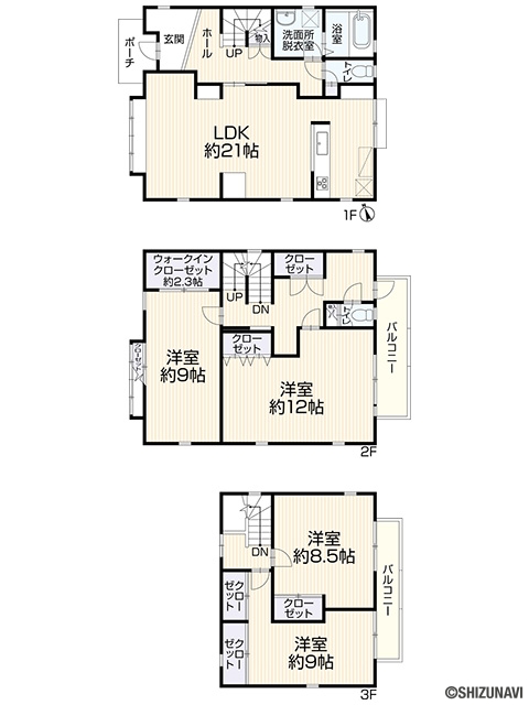 ・各部屋は8帖以上と広々としておりますが、収納スペースも十分確保されております
