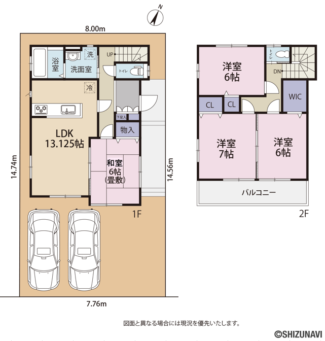 ・土地面積:115.40㎡(34.9坪)建物面積:94.39㎡(28.55坪)
