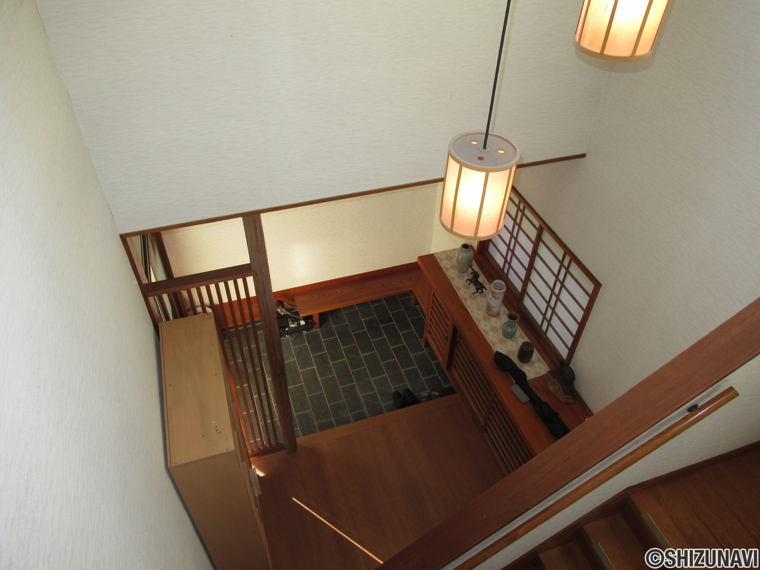 ・吹き抜けの玄関、踊り場のある階段