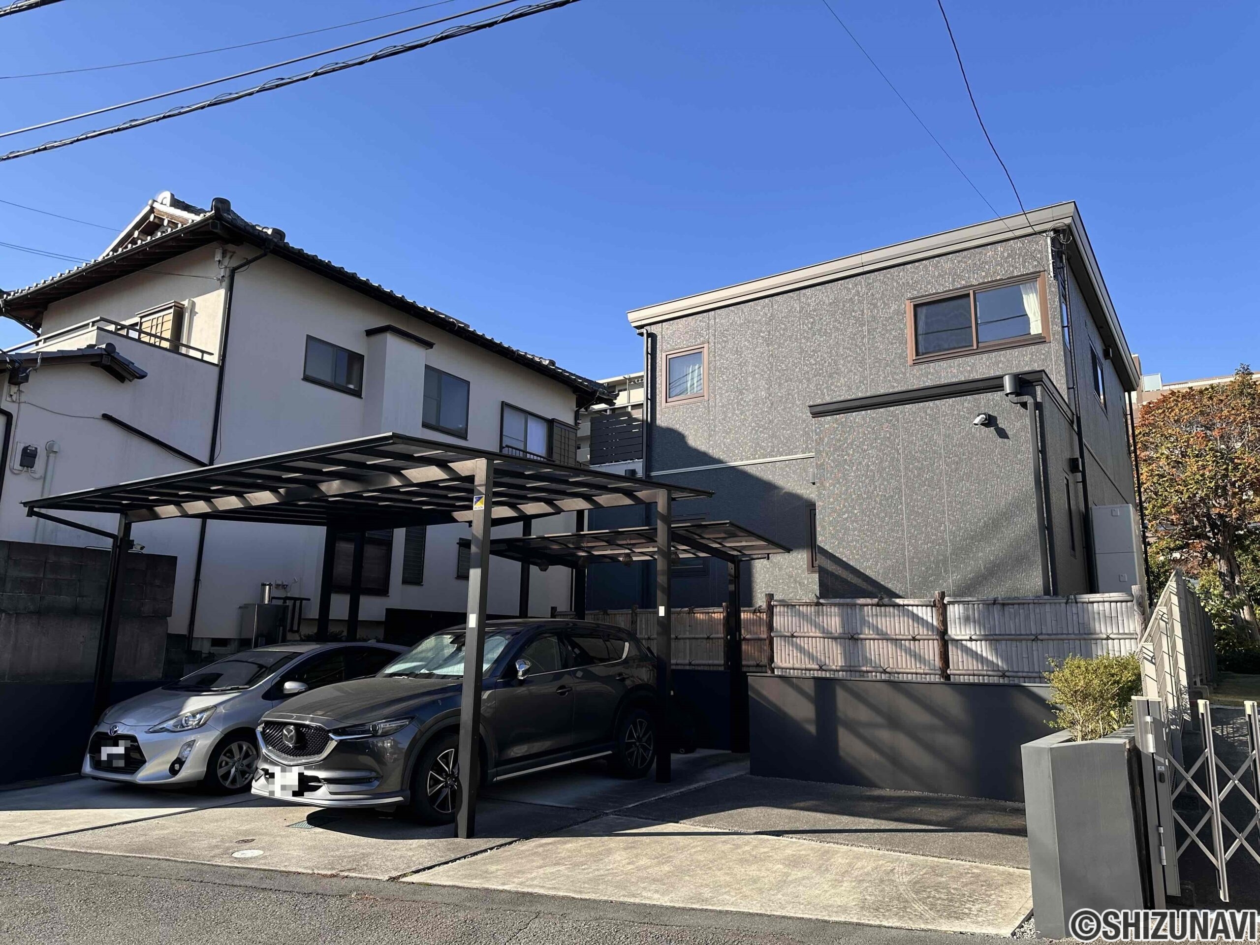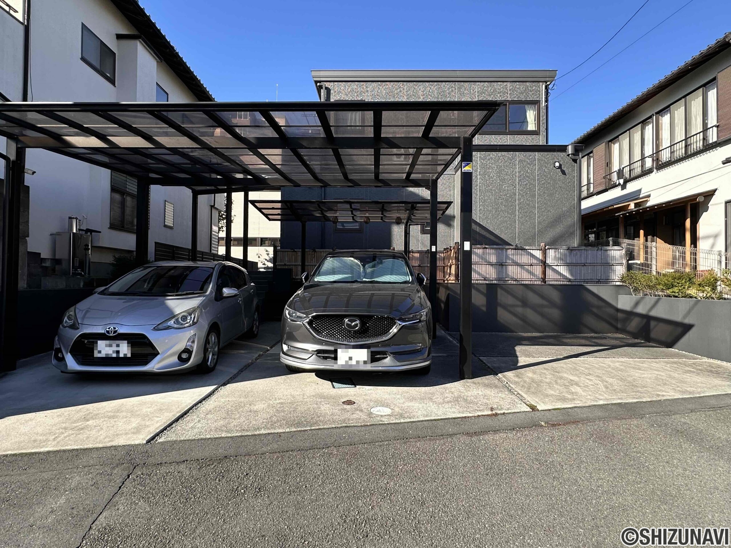 ◎駐車場は3台(普通車2台+小型・軽1台)。並列2台はカーポート付き。雨の日の乗り降りもストレスを感じません。