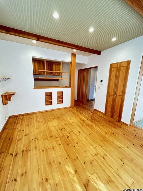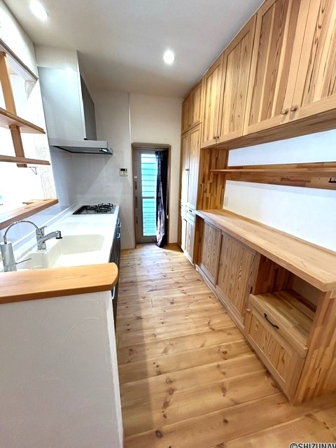 - 白壁に、無垢材(本物の木)をふんだんに使用した内装は、清潔感と温かみを感じます。