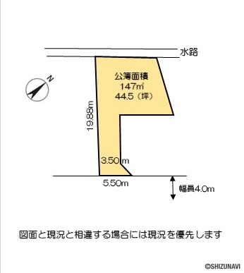 ・44.5坪(147㎡)、地目は雑種地です。