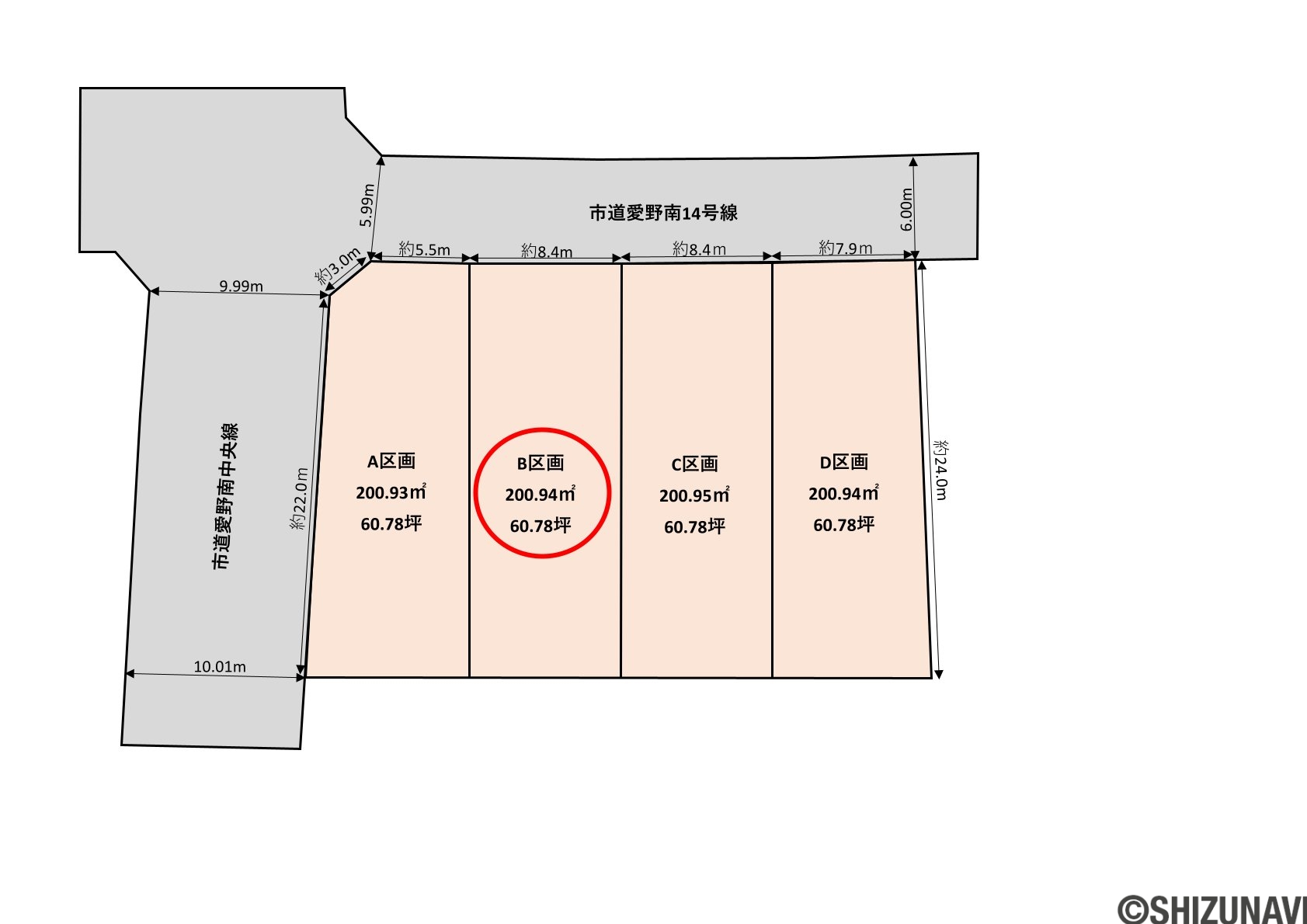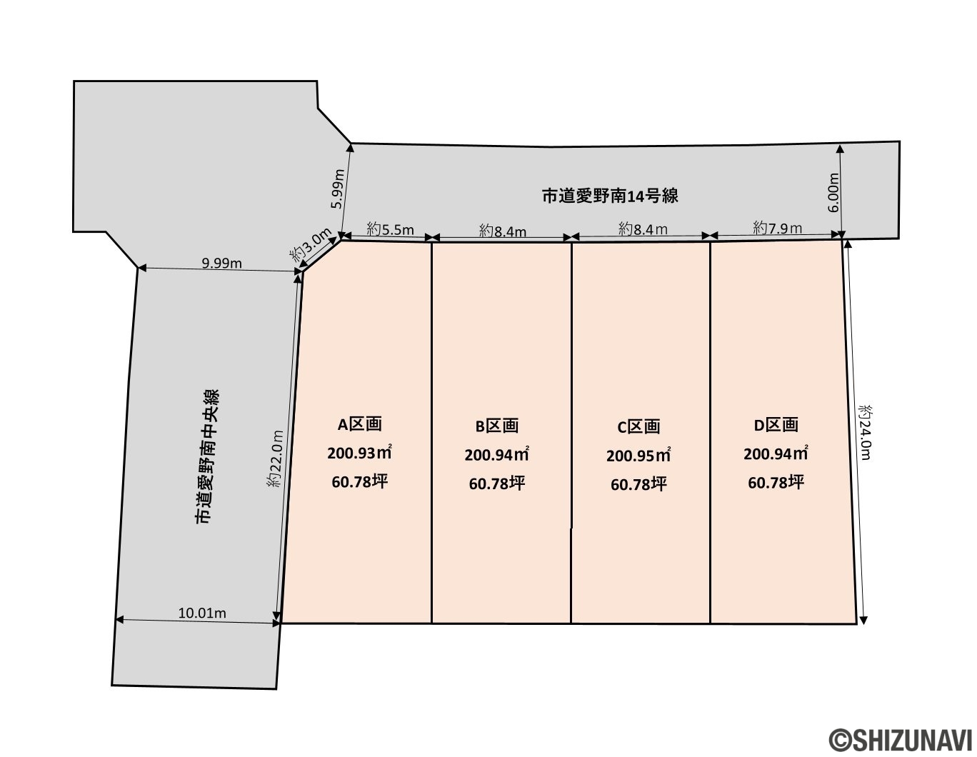 【仲介手数料不要】袋井市愛野南4丁目 4区画分譲地