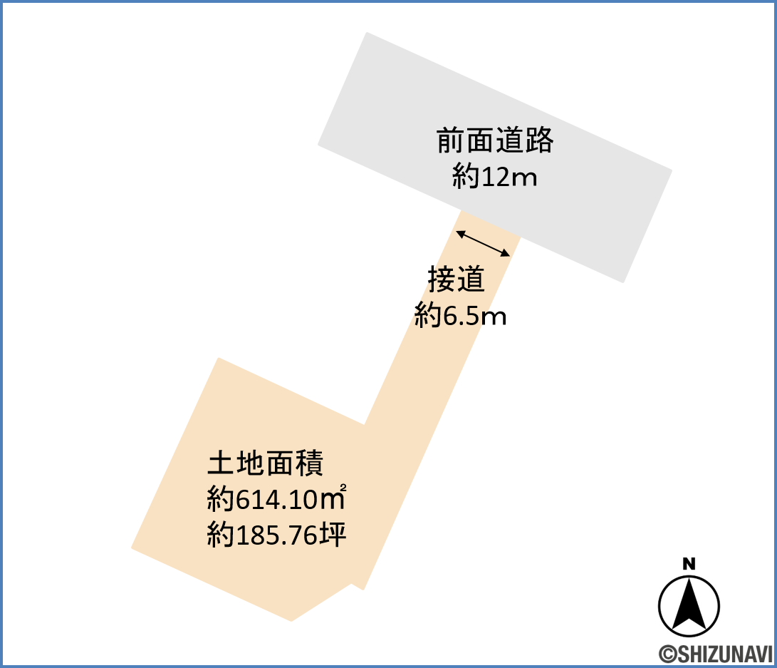 土地面積約614.10㎡(185.71坪)、建築条件なしのお土地です。