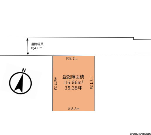 4.0m幅(アスファルト舗装) 私道:持分なし(所有者:静岡鉄道株式会社) |