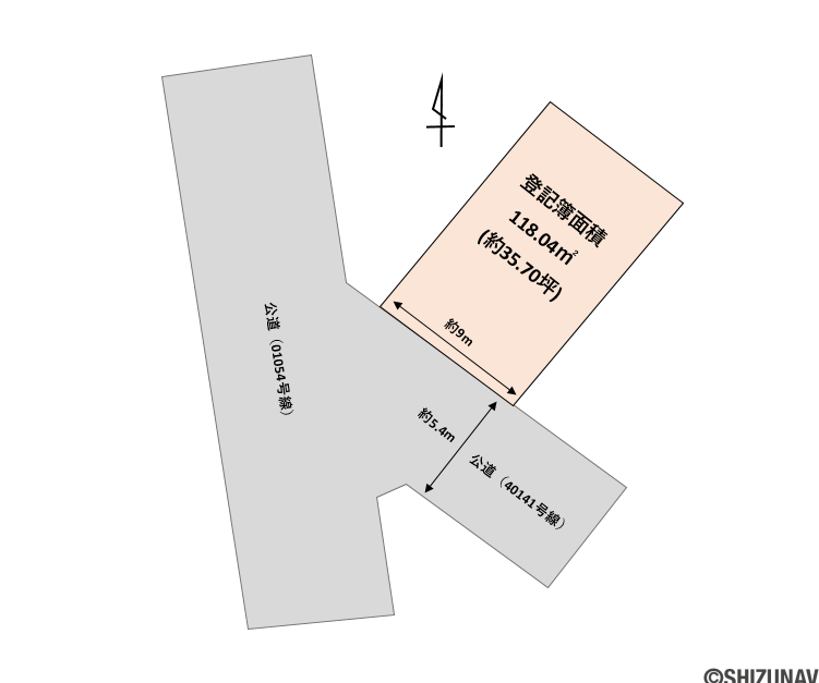 5.4m幅(アスファルト舗装) 接道接面:約9m |
