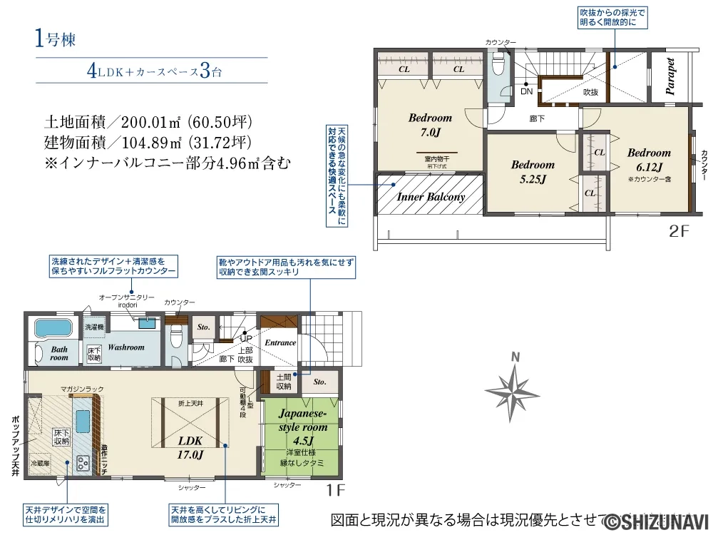 - フローリング ワイドバルコニー インナーバルコニー 折上天井 外水栓 耐震等級3
