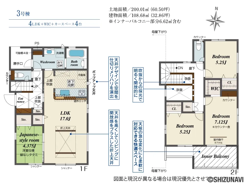 | 室内設備・仕様・収納 | 全居室収納、ウォークインクローゼット、床下収納 |