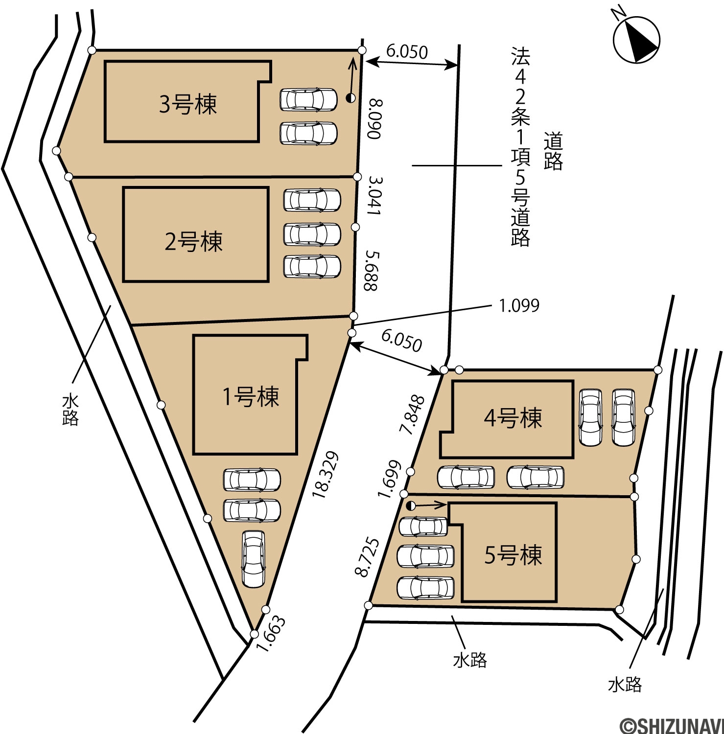 6m幅(アスファルト舗装) 3号棟:南東6.0m 私道 接面8.0m 位置指定あり |