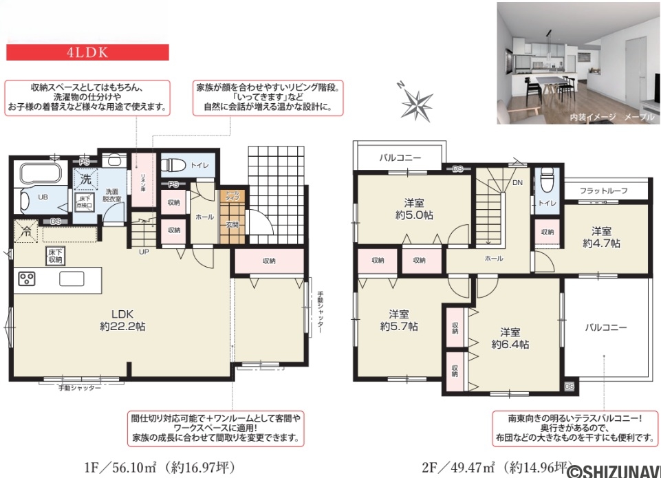 | 室内設備・仕様・収納 | 全居室収納、床下収納 |