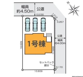 4.5・4.0m幅(アスファルト舗装) 北東側約4.5m、南東側約4.0m公道に接道 |