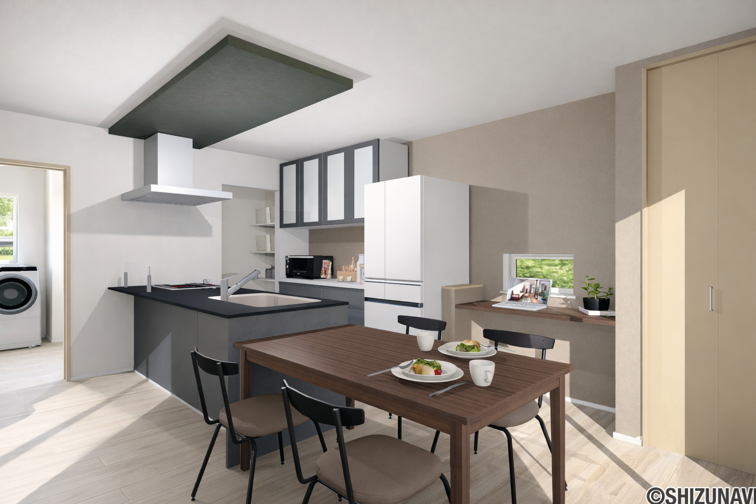| キッチン | 対面式キッチン、パントリー(食器・食品の収納庫)、IHクッキングヒーター、食器洗乾燥機 |