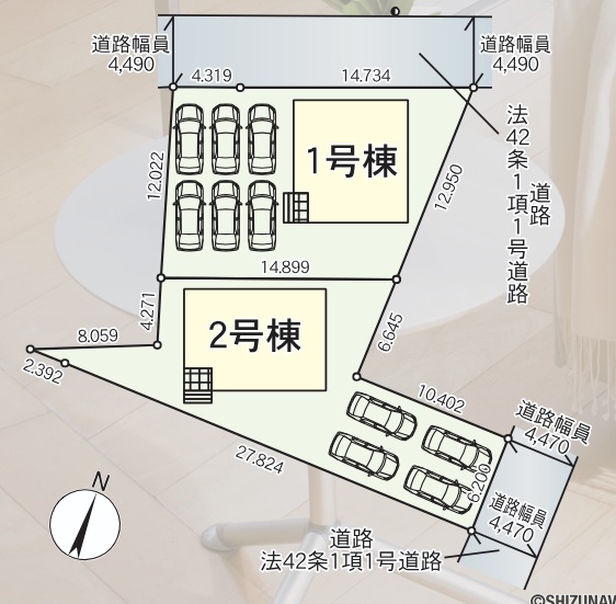 4.4m幅(アスファルト舗装) 1号棟 北側約4.4m公道に接道 |