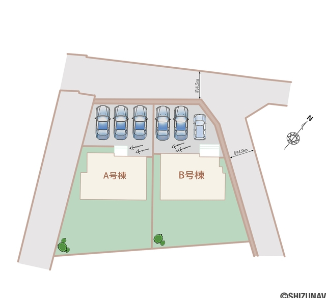 m幅 A号棟 北西:5.2m B号棟 北西:4.5m 北東:4m |