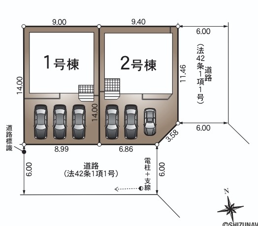 6.0m幅(アスファルト舗装) 南側約6.0m公道、東側約6.0m公道に接道 |
