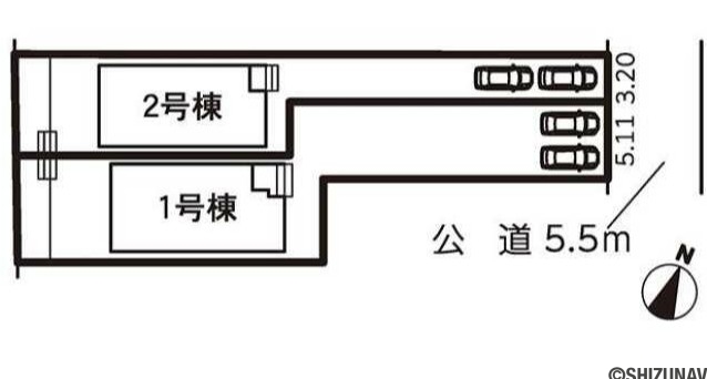 5.5m幅 1号棟:北東 公道 接面5.11m |