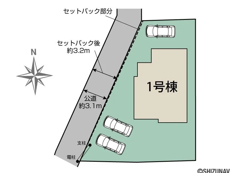 3.1m幅(アスファルト舗装) 西側約3.1m公道(セットバック後約3.2m) |