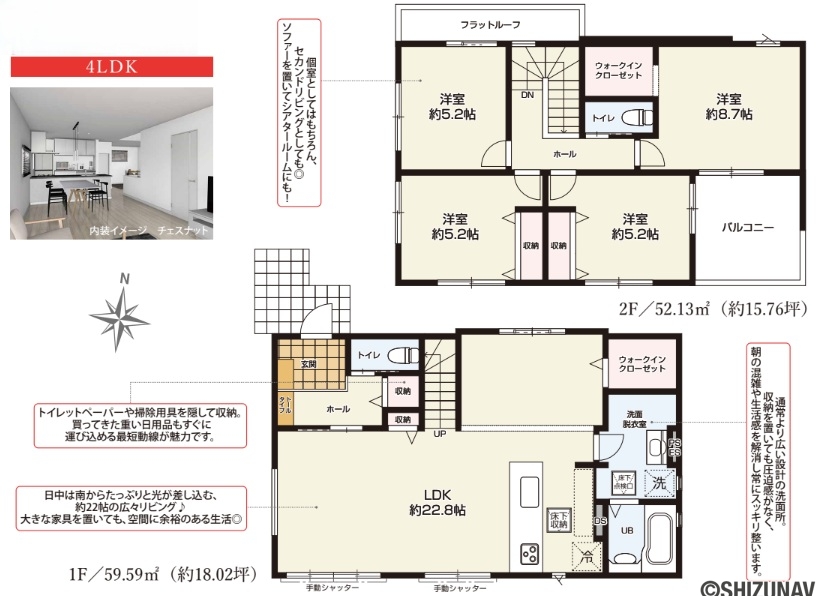 | 室内設備・仕様・収納 | 全居室収納、ウォークインクローゼット、床下収納 |