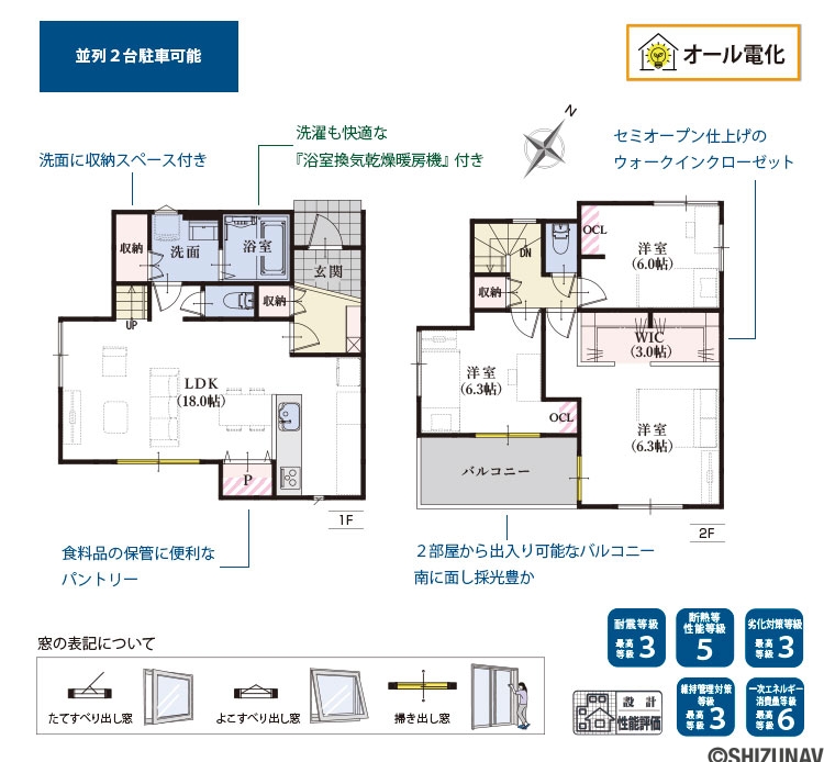 | 構造・工法・仕様 | オール電化、省エネ給湯器、複層ガラス |