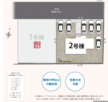 敷地79坪以上ゆったりとした広さの整形地